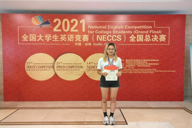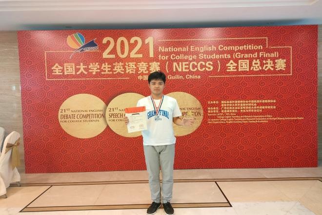 2021年全国大学生英语竞赛(NECCS)全国总决赛于2021年8月2日至7日在广西壮族自治区桂林市举行。由伟德国际1946指导教师撒忠清、刘辉带领的五名江南学子充分发挥自身水平,经过激烈的角逐与层层筛选,在总决赛的各项赛事中取得了优异的成绩和诸多奖项。其中,商学院工业1902班韩赛鸿荣获演讲比赛一等奖、风采大赛二等奖以及优秀主持人奖,设计学院整创1901班张嘉珩获得演讲比赛二等奖、辩论赛三等奖、风采大赛优胜奖,化工学院19硕郑博文获得风采大赛二等奖、辩论赛三等奖以及优秀主持人奖,伟德国际1946英语1805班汪婕获得辩论赛三等奖、演讲赛三等奖及风采大赛优胜奖,商学院会计1902班陆李楠获得风采大赛三等奖及演讲赛优胜奖。
