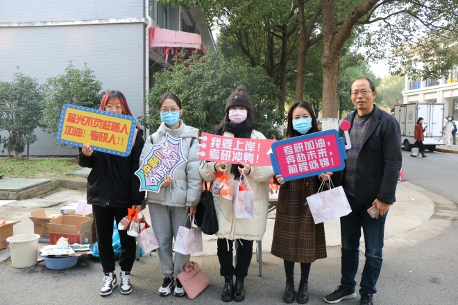 2021年全国硕士研究生招生考试即将到来,为增强伟德国际19462022届考研学子的自信心,表达学院对学子的关心和鼓励,12月15日早上7:30,在学生宿舍园区开展“寒冬送温暖,情系考研生”考研学子考前慰问活动。学院党委副书记刘伯贤、毕业年级辅导员苗文建及班主任代表参加了此次活动。