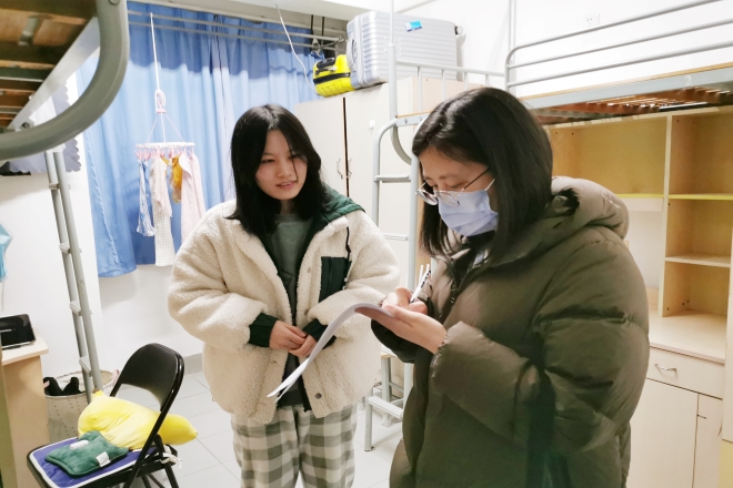 走访过程中,学院领导与同学们进行了亲切交流,详细了解学生的返校过程、宿舍网课学习、就业情况及返校后校园生活的感受,叮嘱同学们要严格遵守疫情防控期间校园管理要求,做好校园疫情防控下的自我管理和个人防护,要自觉坚持晨、午体温检测,并注意保持宿舍卫生整洁,如有异常情况,要及时报告,保持积极的心理状态,齐心协力共同营造安全有序的校园环境。特殊时期的宿舍走访,让同学们深切感受到学院的温暖和关怀。