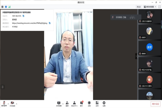 同日晚上,伟德国际1946党委副书记刘伯贤召开了2021级本科生会议,刘书记号召大家积极高效地进行线上学习。面对疫情的严峻考验,同学们应服从疫情指挥要求,听从学校安排,及时测温上报。他还鼓励同学们多参加锻炼,保持良好的体魄和健康的精神状态。刘书记传达了学院关于教工党员联系宿舍的相关规定,逐一介绍了党员教工的情况,告知每位学生遇到思想、学业、心理、职涯规划等问题都可以咨询宿舍导师,鼓励学生加强与老师的沟通和交流。