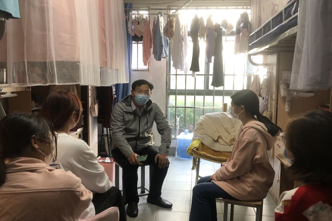 4月3日上午,史志洪作为浩苑62-102宿舍的联系党员对学生进行了探望慰问。史书记首先关心了102宿舍的同学们在疫情期间的学习、生活情况,提醒学生做好自我保护、保持良好心态。史书记关切地询问了同学们对未来发展的想法和规划,并结合四位同学的目标给予了自己的建议,为同学们指明了路径和方向。此外,史书记希望同学们可以在未来的学习过程中相互帮助,注重提升自己的政治素养,积极向党组织靠拢。他表示,自己作为宿舍导师会尽己所能为她们提供帮助。同学们对书记的到来感到很开心,能与宿舍导师的面对面交流也让他们倍感温暖,大家都十分感谢学院的关心和指导。