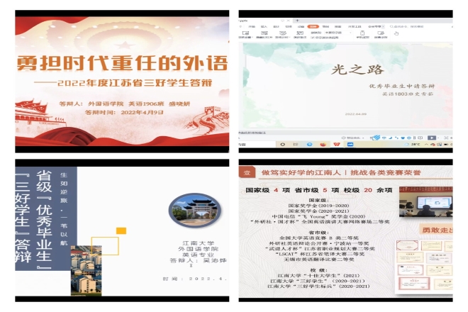 为进一步树先进榜样典型,加强学风建设,展示外院学子奋发向上的精神风貌,学院本着公平、公正、公开的原则,于4月9日晚在腾讯会议室举行“省三好学生”等省级荣誉线上答辩会。学院党委副书记刘伯贤、分团委书记陆芳、辅导员顾海星、苗文建以及学生代表参加并担任评委,学院学生线上观摩答辩。