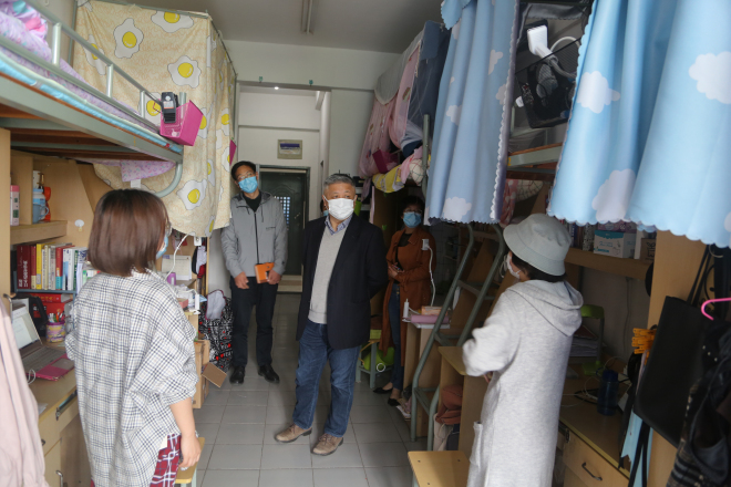 随后,徐校长一行来到澈苑公寓,亲切看望慰问了我院返校的学生,了解学生返校情况,询问她们返校后的学习计划、毕业打算,激励学生做好近期在校规划和毕业规划,以积极的心态面对疫情阶段的学习生活。