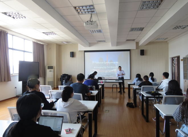 5月28日下午两点,2019外语学科系列讲座暨第六期“遇见更好的自己”名师沙龙活动在伟德国际1946A529准时召开。本次活动由美国北卡罗莱纳州立大学(NCSU)英语系技术传播专业教授丁慧玲主讲。参加本次沙龙活动的有专业课老师及学院各年级本科生和研究生。本次讲座的主题是:技术传播:一个蓬勃发展的写作设计行业。