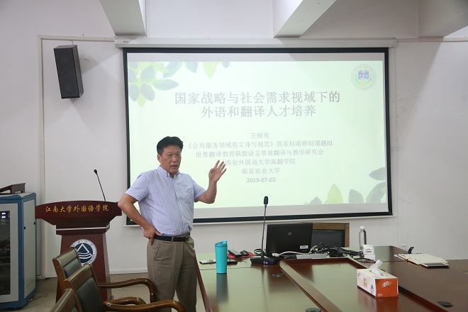 7月2日下午,南京农业大学伟德国际1946教授、典籍翻译和海外汉学研究中心创始主任王银泉教授来我院作了题为“国家战略与社会需求视域下的外语和翻译人才培养”的学术讲座。讲座由朱义华副院长主持,学院研究生与部分老师参加了此次学术讲座。