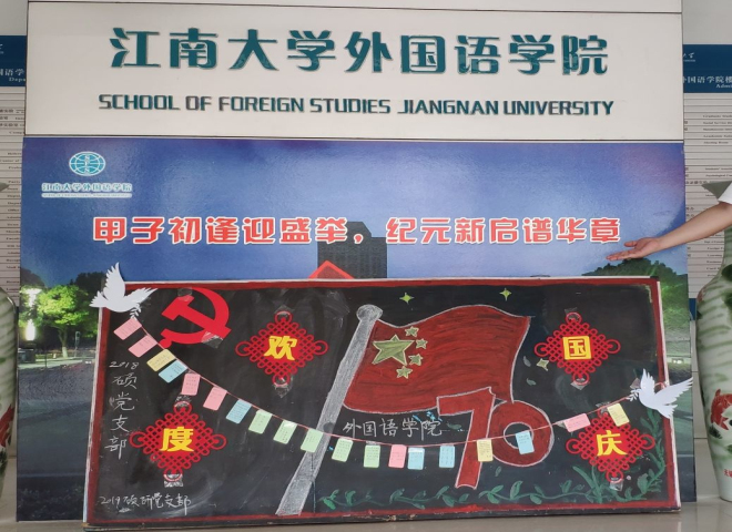 党支部制作了以“庆贺中华人民共和国成立70周年”为主题的展板