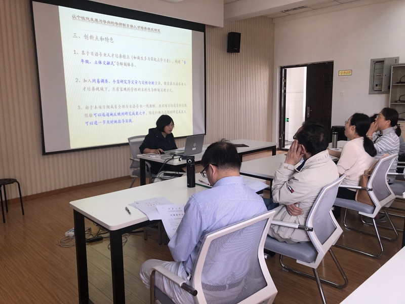 此次结题的四个校级本科教改一般项目分别是崔明姬副教授主持的《以个性化发展为导向的导师制日语人才培养模式研究》、李智副教授主持的《合作学习模式下高年级日语课堂教学改革与实践》、石艳春副教授主持的《以人文理念为导向的基础日语教学改革研究》和王伟炜老师主持的《大学英语混合式教学质量评价体系的构建与实践》,各个项目组分别介绍了项目设定的预期目标和实际研究进展情况,并围绕项目的研究成果、创新点、后续研究等方面作了详细的汇报,并针对专家提问进行了认真回答。