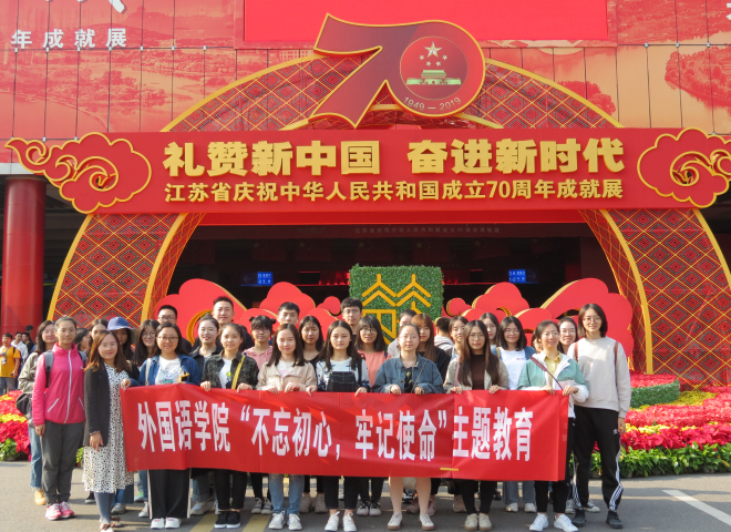 为庆祝中华人民共和国成立70周年,深入贯彻落实党中央“不忘初心、牢记使命”主题教育工作会议精神,伟德国际1946党委组织五个学生党支部于10月19日前往南京国际博览中心,参观了“礼赞新中国 奋进新时代——江苏省庆祝中华人民共和国成立70周年成就展”,开展“不忘初心、牢记使命”主题教育实践学习。