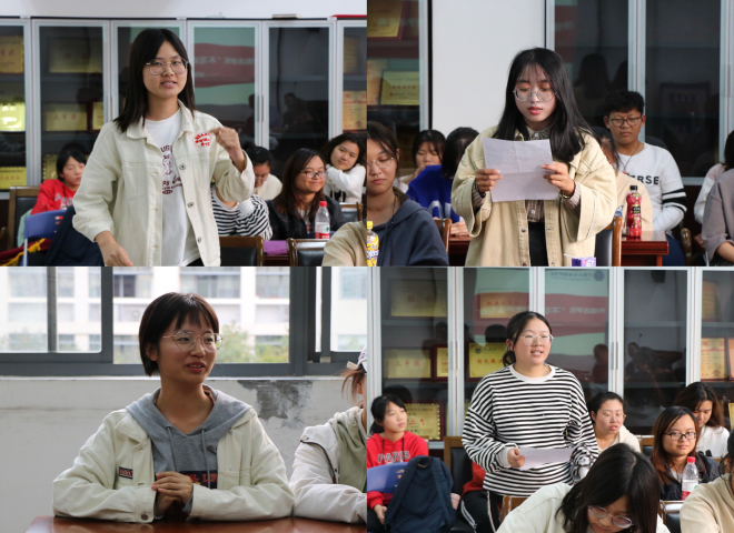 在聆听了老党员的分享后,青年学生也纷纷谈了自己对初心的感悟。英语1805班石超琴分享了自己对初心的理解,由此思考我们党团共建的初心是引领青年健康成长,成长为国之栋梁、民族希望。英语1803班张英杰认为初心是对梦想的坚守,无论在哪里,坚持梦想,初心永在。史雪茹、杨鑫科、夏琴美、洪智超等同学分别分享了自己的青春故事和初心梦想。从同学们的发言中,了解了大家对初心的理解,更感受到了青年的梦想与希望。在场的老党员对团员代表的发言表示肯定与赞扬。