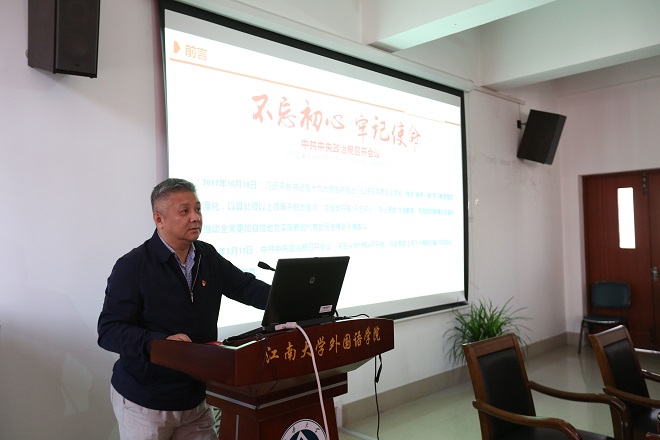 根据学校“不忘初心、牢记使命”主题教育的统一部署,10月29日下午,校党委常委、副校长徐岩来到伟德国际1946,为学院师生党员上了题为《不忘初心、砥砺前行,以“双一流”建设推进学科发展》的专题党课,学院党政领导、英语系、日语系教师党员和学生党员代表等30多人现场聆听。