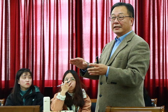 讲座中,张教授首先谈到了当今教学内容和文学研究范式的转变,然后就年轻人如何做学术,如何建立学术积累发表了自己的看法。最后张教授从教师的角度出发,谈到了如何兼顾教学和学术研究,如何发挥团队科研优势,如何在学术界保持自己的曝光度、活跃度与知名度。张教授指出,青年教师与研究生做学术必须要有一种内生的“passion”与“urge”,对学术的热情应活跃于血液之中,而非迫于外力。张教授提出教师不仅仅是一个“teaching”的角色,而应该是“integration of teaching and researching”的整合角色,要做到教学相长、教研相长,并通过发表论文、出版著述、参与学术会议、担任学术组织任职或学术期刊编委等方式活跃于学术界。关于论文发表,张教授总结到:“publication”是“passion”,“vision”和“collaboration”共同作用的结果。