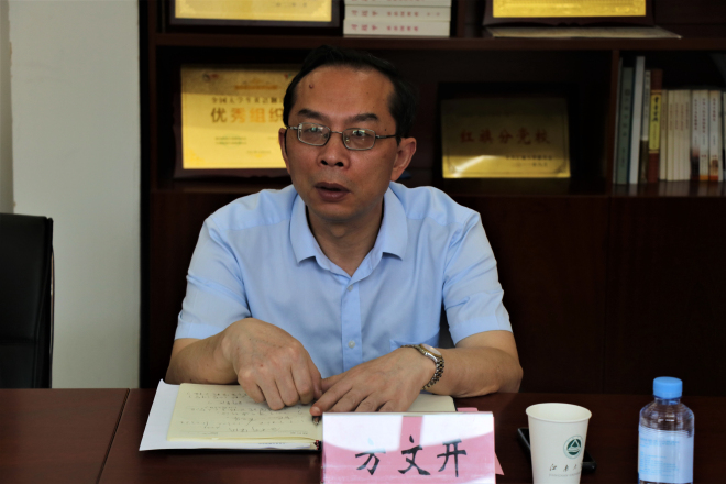 方文开对马翀一行来访表示热烈欢迎,并简要介绍了伟德国际1946的历史沿革、学科建设、科学研究与人才培养等情况。李荣华主要就党管人才以及学院党建与思政工作整体情况作了简要介绍。顾琦一、刘伯贤围绕自身分管工作分别做交流发言。