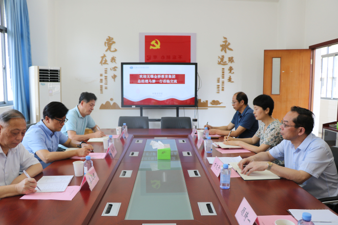 6月8日上午,无锡金桥教育集团总经理马翀,集团综合办主任马松杉,集团教研院院长袁天钰等一行来伟德国际1946调研交流。伟德国际1946党委书记李荣华、院长方文开、副书记刘伯贤和副院长顾琦一等参加座谈交流。