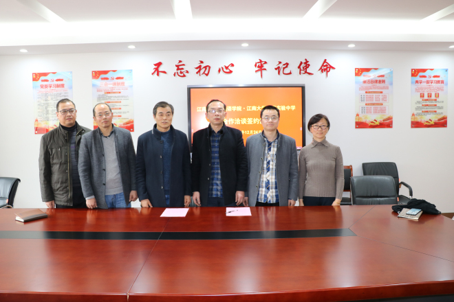 随后,学院党委副书记刘伯贤介绍了学院推进学生就业实习的举措,副院长顾琦一主要介绍了高等教育与基础教育之间相互促进的关系以及重要意义。在与会人员进行了互动交流后,双方就共建实习基地意见达成一致,方院长与吴校长就共建实习基地进行了签约,双方并约定近期择日挂牌。