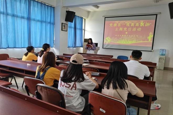 6月7日上午,我院研究生翻译方向党支部在文科楼A433室开展了党支书讲党课暨“党旗在基层一线高高飘扬”主题党日活动。