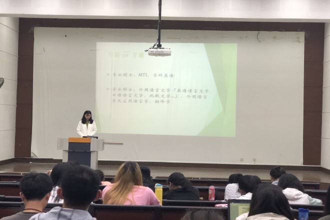 为了进一步提高我院2018级学生的考研和就业热情,明确目标,掌握相关技巧, 5月20日晚,伟德国际1946考研就业主题分享会在一教1C109举行,周鸿钰、姜小洁、李爱璇、张悦和景畅学姐分享了她们的考研、就业经验。