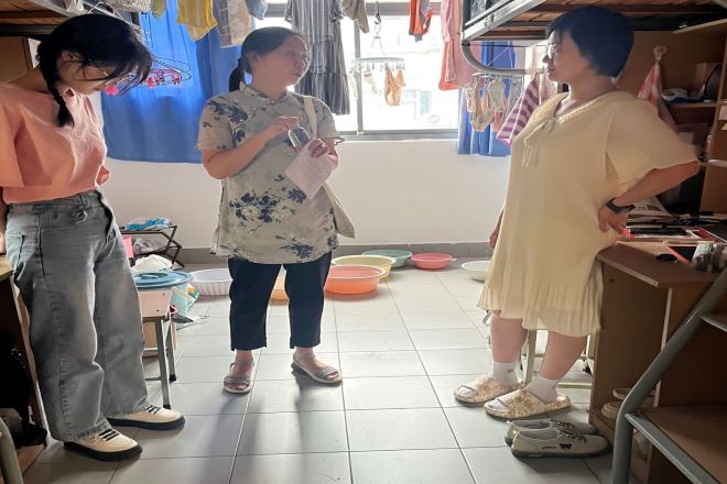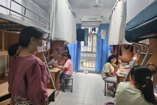 班主任朱虹老师走访学生宿舍