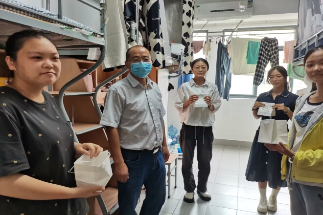 9月7日,为了解新生在校的适应情况,帮助新生更好地融入大学生活,学院党委副书记刘伯贤、22级新生辅导员和各班班主任老师一同走访新生宿舍,了解新生入住情况并进行慰问。
