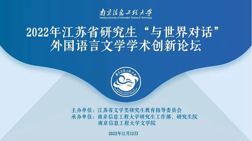 11月12日,2022年江苏省研究生“与世界对话”外国语言文学学术创新论坛在南京信息工程大学举办。本次论坛由江苏省文学类研究生教育指导委员会主办,由南京信息工程大学研究生工作部、研究生院、南京信息工程大学文学院承办。论坛采用线上线下相结合的方式进行。