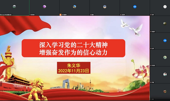 11月23日晚,拓展部党支部组织党员教师召开以“深入学习领会党的二十大精神”为主题的线上支部政治学习。会议由支部书记邢嘉锋老师主持,朱义华副院长莅临线上会议室并讲授了专题党课——“深入学习党的二十大精神,增强奋发作为的信心动力”。