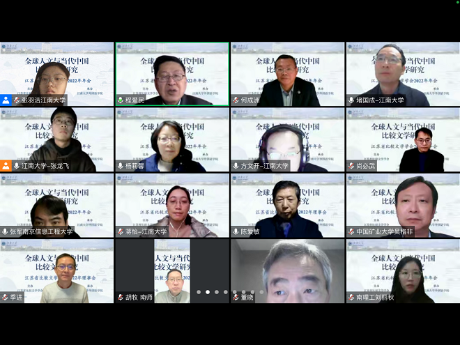 2022年12月10日,“全球人文与当代中国比较文学研究”暨江苏省比较文学学会2022年年会在伟德国际victor1946成功召开。此次会议采取线上方式进行,来自上海、北京、天津、江苏、浙江、陕西、河南、湖南、四川、云南、福建、黑龙江等省市高校的200余位专家、学者、研究生参加会议。