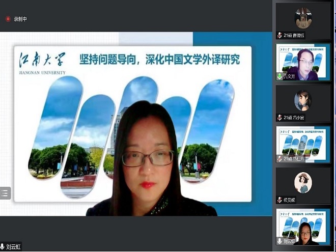 随后,刘云虹教授就如何深化中国文学外译研究给出了自己的建议。首先要以上述问题为导向,构建两种比较视野。其次,译者们必须要坚持动态发展观,要对中国文学外译有方向性的把握,深刻认识翻译本质、遵循翻译活动基本规律,秉持中国文学外译的审美价值取向。最后,刘教授对讲座进行了总结,指出新的时代背景下,“中译外”的重要性越来越凸显,译学界应当重新审视与思考翻译根本性问题,坚持方向把握与价值引领,进一步深化中国文学外译研究。