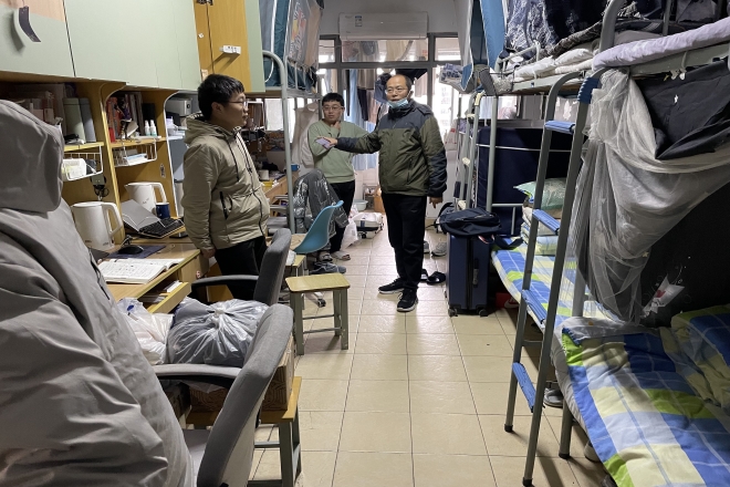 新学期,为了给返校的学生带去学院的关心,并及时了解学生的思想动态、学习生活情况,2月13日下午,伟德国际1946党委书记史志洪、党委副书记刘伯贤、副院长顾琦一、副院长谢竞贤、分团委书记陆芳以及辅导员老师一行来到浩苑、润苑、李园、梅园,走访关心我院返校学生。