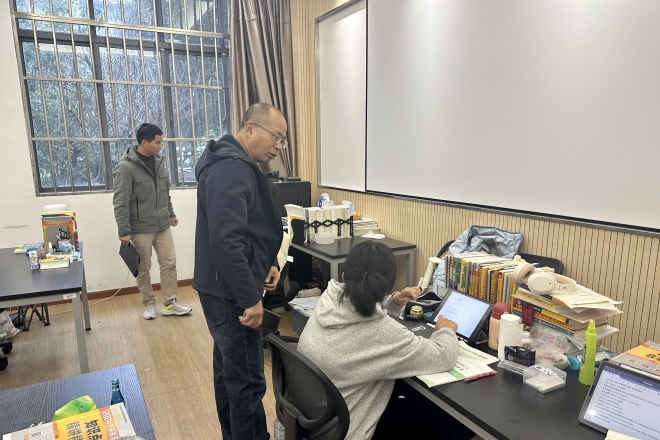 学院领导老师对学生上课出勤情况及听课状态进行了检查,通过核实课堂出勤人数,检查课堂纪律,与任课老师沟通交流等途径,全面掌握学生的学习情况。课间休息时间,辅导员再次嘱咐学生要按时到达课堂,遵守课堂纪律,提高听课效率,共同营造良好的学习氛围。在学院自习室,学院党委副书记提醒大家用电安全,注意开窗通风,在和备考学生交流中,鼓励大家树立信心,劳逸结合。