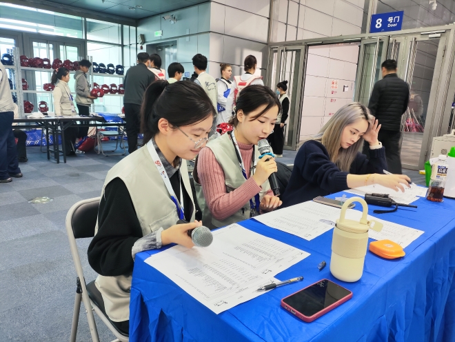 2023年跆拳道大满贯冠军系列赛前期,在经过通用培训、岗前培训和现场演练三级培训后,伟德国际1946选拔出了184名学生志愿者,投身到赛事的检录播报、护具穿戴、入场引导、计时计分、国际裁判接待等多个岗位中。
