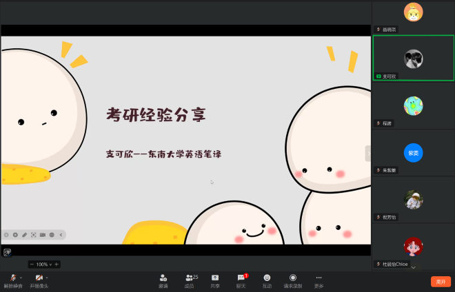 此次考研复试经验分享会内容干货满满,四位学姐不仅传授备考方法和经验,还为处于迷茫期及自信心不足的考研学生加油打气,交流环节大家进行了积极的互动问答。相信准备复试的同学听过分享后收获满满,祝愿同学们研途顺利。