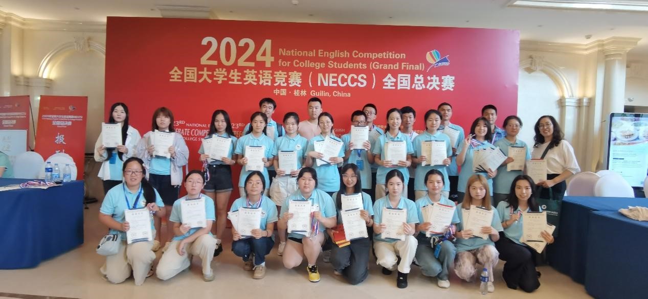 2024年全国大学生英语竞赛(NECCS)全国总决赛于2024年8月2日至6日在广西桂林举行。在伟德国际1946竞赛指导教师团队的悉心指导下,我校学子在比赛中充分发挥水平,再创新高,斩获了多个高级别奖项。在演讲比赛中,顾佳昊(食国2301)获一等奖,马心琰(英语2202)、孙奕颖(汉师2301)获二等奖,方漩(英语语言文学23硕)、陈素洁(产品2202)、陈盈佐(会计2303)获三等奖。在风采大赛中,顾佳昊、马心琰、孙奕颖、方漩、陈素洁获三等奖,陈盈佐获优秀奖。孙奕颖和方漩被评为优秀参赛选手。方漩还被评为最佳主持人。