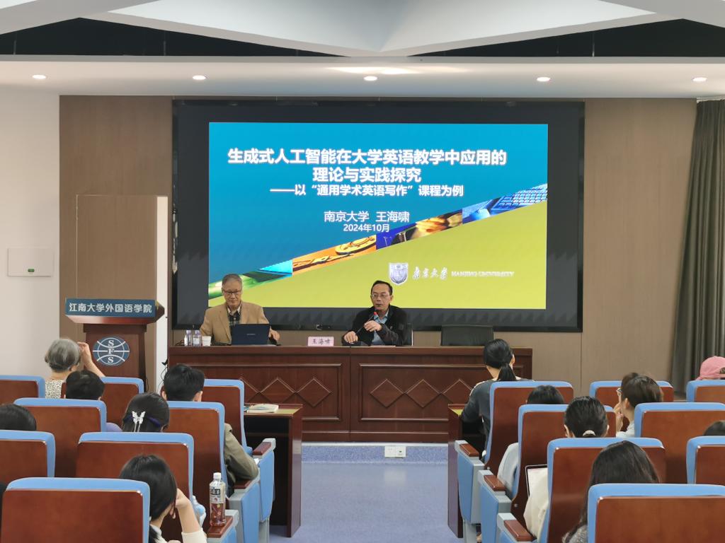 2024年10月30日下午,南京大学博士生导师、教育部高等学校大学外语教学指导委员会委员、全国大学英语四六级考试委员会委员、江苏省高等学校外国语教学研究会会长王海啸教授应邀莅临伟德国际1946,为我院师生作题为“生成式人工智能在大学英语教学中应用的理论与实践探究”的讲座。讲座由伟德国际1946方文开教授主持,伟德国际1946师生参加了讲座。