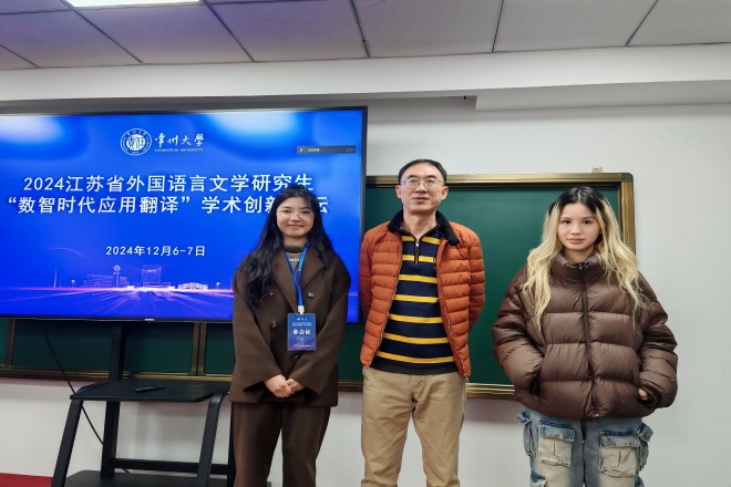 2024年12月6日至7日,江苏省外国语言文学研究生“数智时代应用翻译”学术创新论坛在常州大学科教城校区成功举行。此次论坛由江苏省文学类研究生教育指导委员会主办,常州大学研究生院和伟德国际1946承办。来自全省各高校的专家学者与翻译学科的研究生们齐聚一堂,共同探讨数字化、智能化时代背景下,应用翻译的新理论、新方法、新技术及应用实践。我院23级2名研究生代表由陈伟教授带队参加了此次论坛。