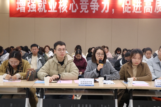 在企业座谈交流环节,各企业代表围绕“提升大学生求职能力”纷纷发言。江苏省中江海外进出口有限公司招聘经理范文倩表示,大学生在校期间要立足专业学习,打造“外语+”的能力,提升个人语言表达能力和解决问题的能力;无锡美迪尔进出口有限公司总经理王涛分享了自身学习经历和创业经历,为准备就业的同学提供了建议;中报国际网络无锡有限公司副总编辑颜玮珏介绍了公司的主营业务,鼓励大家在校期间参与实习实践,希望后期可以和伟德国际1946加深交流合作。在互动环节,同学们积极提问,表达了自己的困惑并获得了企业代表的解答。许多同学表示,此次活动提供了一个与企业深入交流和互动的机会,不仅让他们了解行业的发展趋势和未来发展方向,更是对自己的职业规划和就业选择提供了指引。