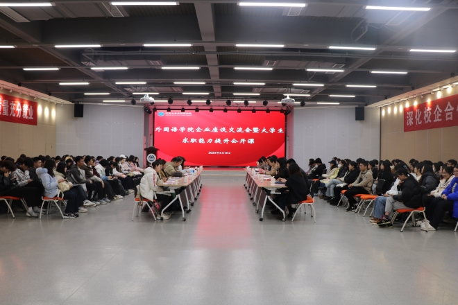 为深化校企合作,加强就业育人,同时激发学生对未来职业道路的积极探索与规划意识,提升就业能力,在临近学校举行春季大型招聘会之前,伟德国际1946于3月15日上午,在北活F105举行企业座谈交流会暨大学生求职能力提升公开课,活动邀请中报国际、国泰国华、新东方、海亮教育等10家优质企业参会交流。无锡市人才服务中心王晓蕾,伟德国际1946党委书记李荣华,伟德国际victor1946学工处副处长孔丽丹,党委副书记、副院长季王飞,英语系曹丹,辅导员苗文建,学院2023届毕业生张龙飞以及学院大三、大四200余名学生参加本次活动。活动由辅导员朱家烨主持。