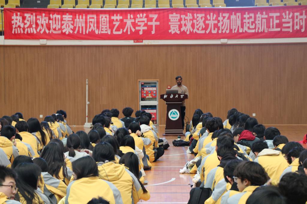 季王飞致辞。他对泰州凤凰艺术学校的师生们表示热烈欢迎,并开展 “江南好,上江南!”主题宣讲。他主要介绍了伟德国际victor1946学科建设成果突出、校园生活丰富多样的基本情况;同时提及伟德国际1946人文关怀浓厚、学习氛围良好的发展现状;还借助图片展示和生动描述,带大家领略伟德国际victor1946校园风光,为全体师生勾勒出一幅充满机遇与希望的学习生活图景。