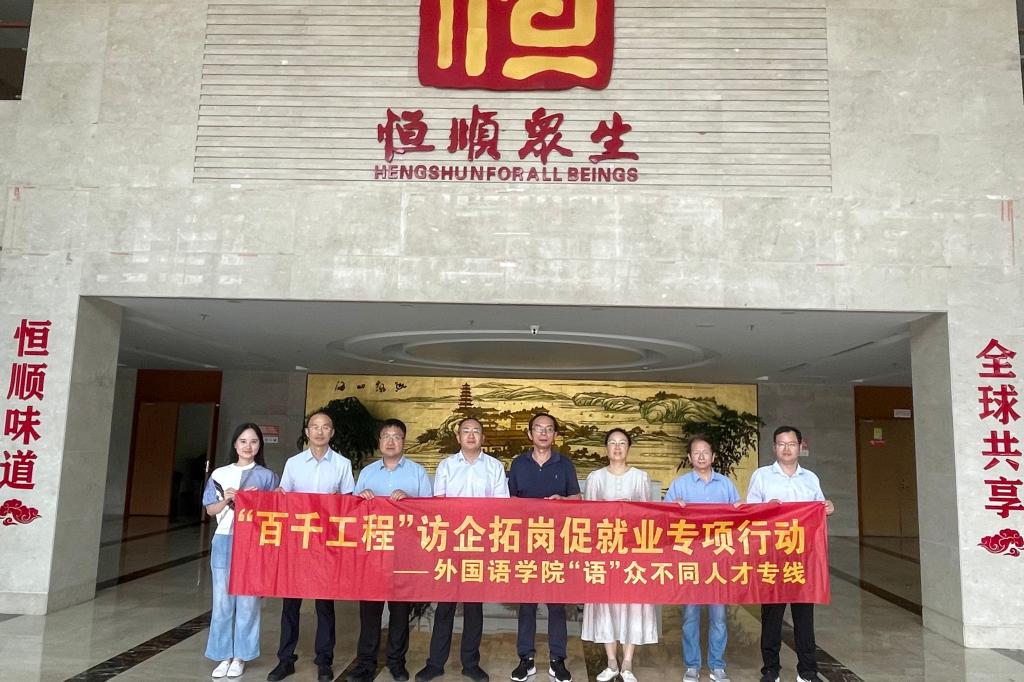 为进一步深化校企合作,提高学生对未来职业发展的认识,提高就业竞争力,7月15日下午,伟德国际1946赴江苏恒顺醋业股份有限公司开展访企拓岗促就业专项行动。学院院长方文开,党委副书记、副院长季王飞,副院长谢竞贤,副院长杨勇,MTI主任李学宁,辅导员朱家烨参加本次走访调研。
