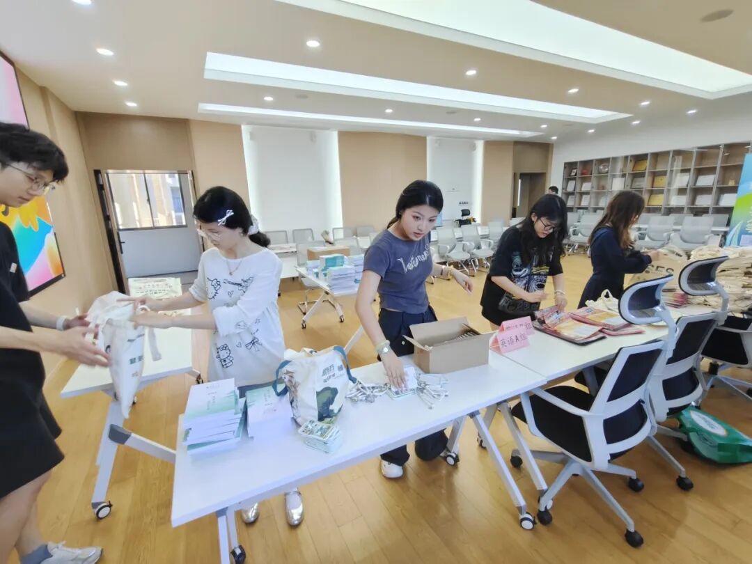 2025年8月29日,150名本科新生加入伟德国际1946大家庭,正式开启四年大学时光。为营造温暖有序的入学氛围,在迎新的筹备现场,志愿者们紧锣密鼓地筹备2025级新生迎新工作。志愿者化身“魔法师”,把对新生的期待与关怀,尽数装进印有美好祝福的帆布袋中。有的同学在仔细检查袋内是否配齐校园手册与定制文创;有的俯身整理堆叠的资料,将其按类别谨慎规整。