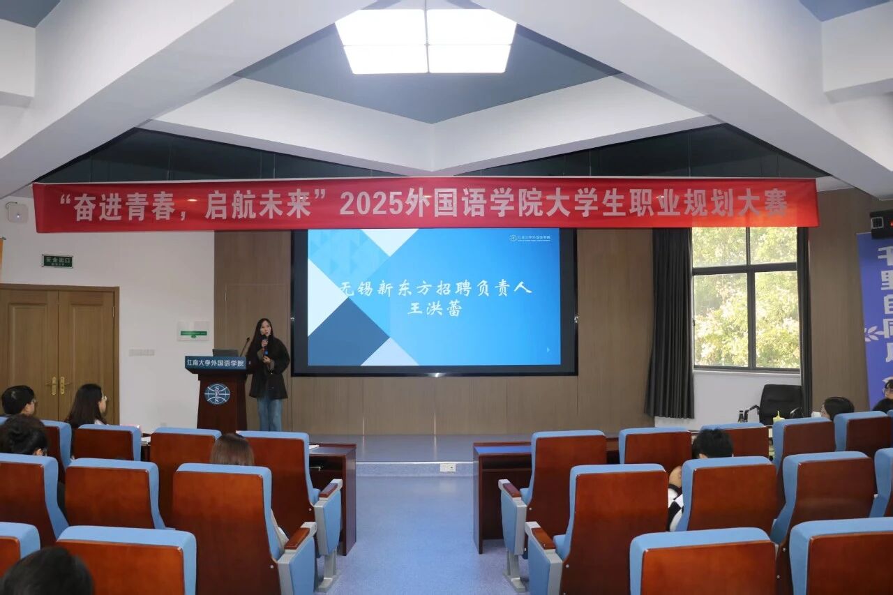 赛后环节中,评委们针对参赛选手的优异表现进行专业点评,并向全体同学发出倡议,希望大家以此次比赛为契机,将规划理念融入日常,切实付诸实践。此外,无锡新东方招聘负责人王洪蕾应邀开展职业规划专题分享,她结合个人成长历程与求职实践经验为我们分享经验。她强调首先要提升进取意识,保持主动学习的心态;其次要提前布局职业规划,避免盲目摸索;最后她呼吁同学们要制定明确的阶段目标,为未来发展锚定方向。此次分享有效启迪了同学们的职业发展思路,为其明晰 “职” 向提供了有力参考。