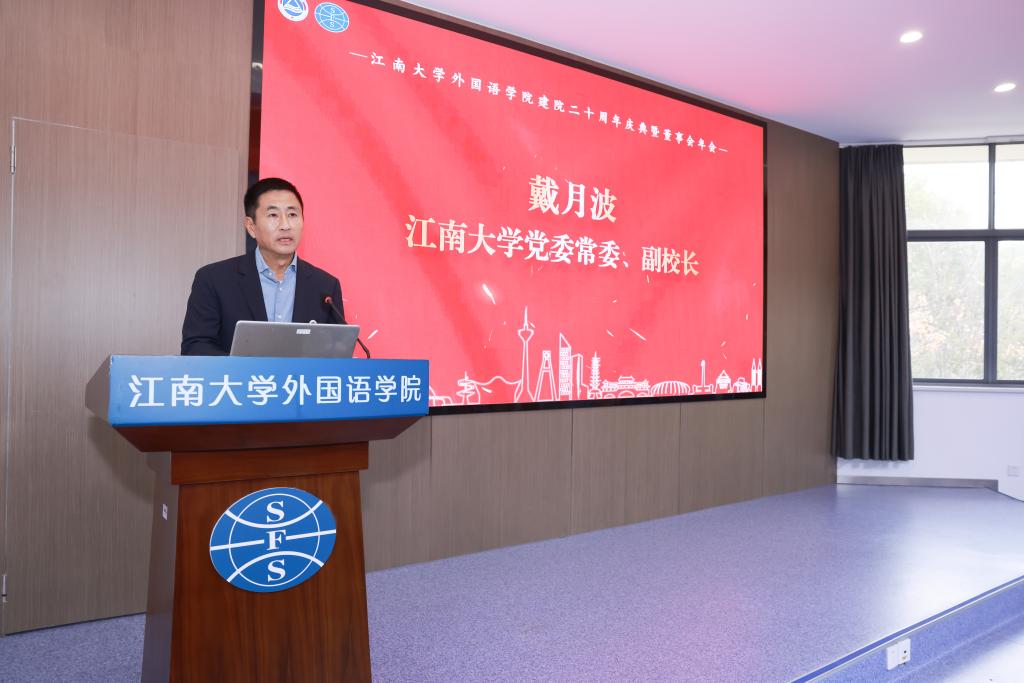 戴月波致辞,首先对伟德国际1946建院二十周年表示热烈祝贺。他高度肯定伟德国际1946建院二十年来始终坚守立德树人初心,秉承“融通文明,道弘天下”的院训,在学科建设、人才培养、科研创新、社会服务等领域取得了令人瞩目的成就,已成为学校国际化人才培养和中外文化交流的重要阵地。同时,向支持学校及学院发展的各界人士致谢并发出邀约,期待校友常回母校、董事单位持续支持学院发展,希望学院以建院二十周年为新起点,持续深化改革、锐意进取,在“外语+”交叉融合发展中打造特色品牌,为学校“双一流”建设和国家外语教育事业发展贡献更大力量。