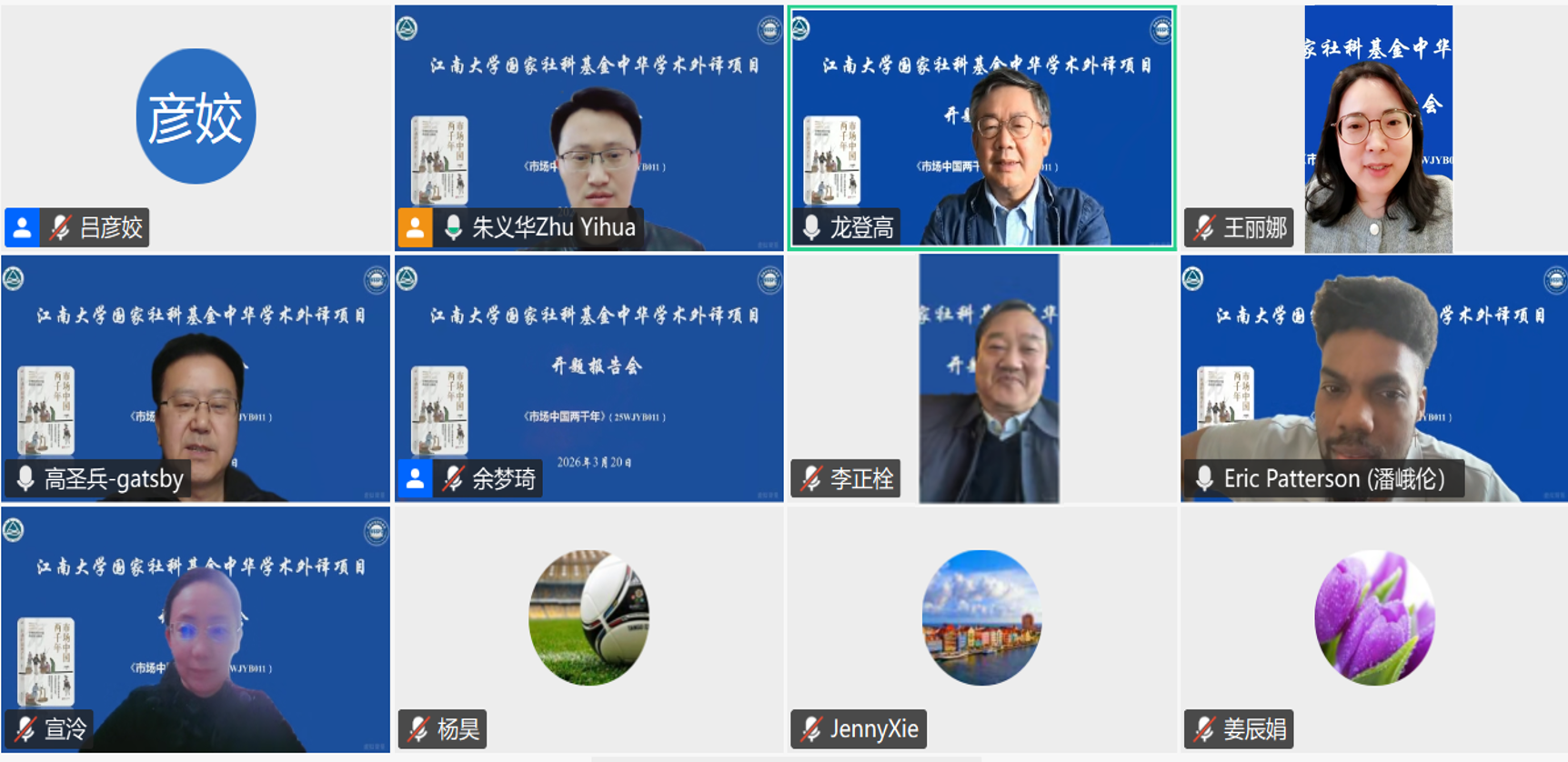 3月20日下午,伟德国际1946以线上线下相结合的方式召开2025年度国家社科基金中华学术外译项目开题报告会。英语系副教授朱义华主持的《市场中国两千年》顺利开题。开题会由副院长杨勇主持。