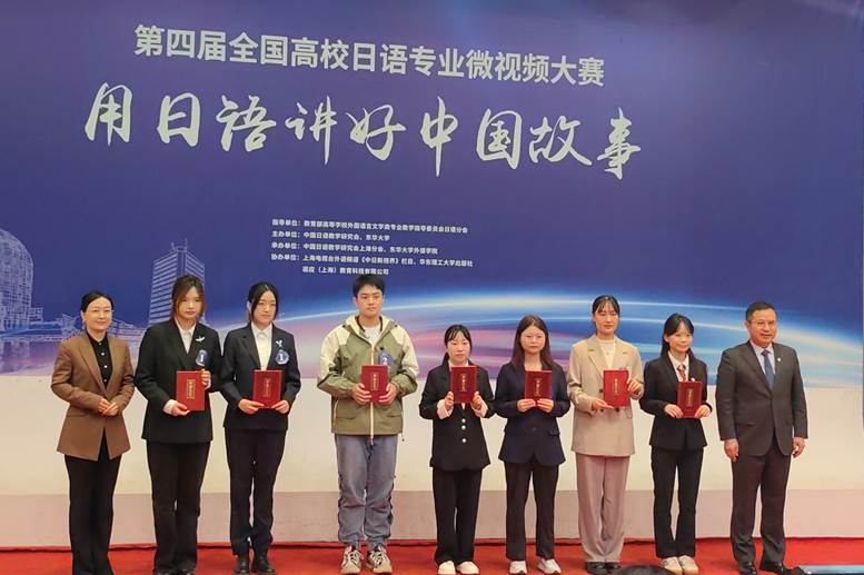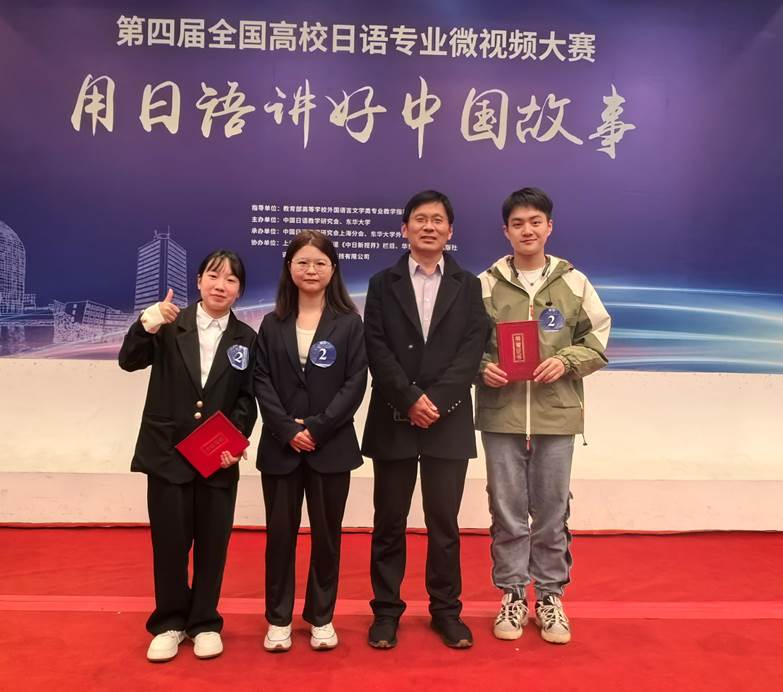 11月17日上午,在上海举行的第四届全国高校日语专业“用日语讲好中国故事”微视频大赛决赛中,我院高小博、高丽、杨炎学三位同学在管纪龙老师、田村恭平老师的指导下,斩获二等奖。这是我院第二次荣获该奖项殊荣,充分展现了我院学子在日语学习和实践领域的卓越实力。