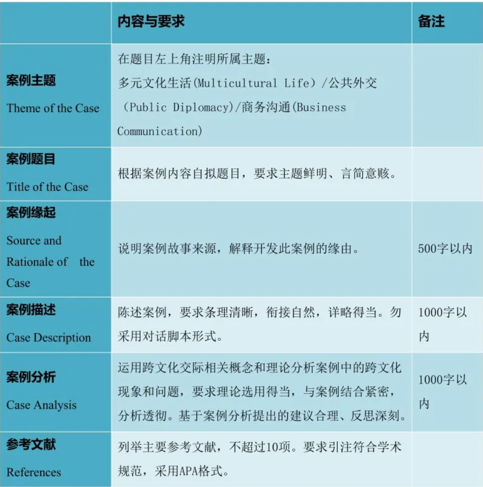 1.参赛选手从多元文化生活、公共外交、商务沟通三个主题中选取一个主题,根据自身的经历、观察或阅读,自主开发与主题相关、具有原创性的跨文化交际案例。不得直接照搬、模仿影视作品。