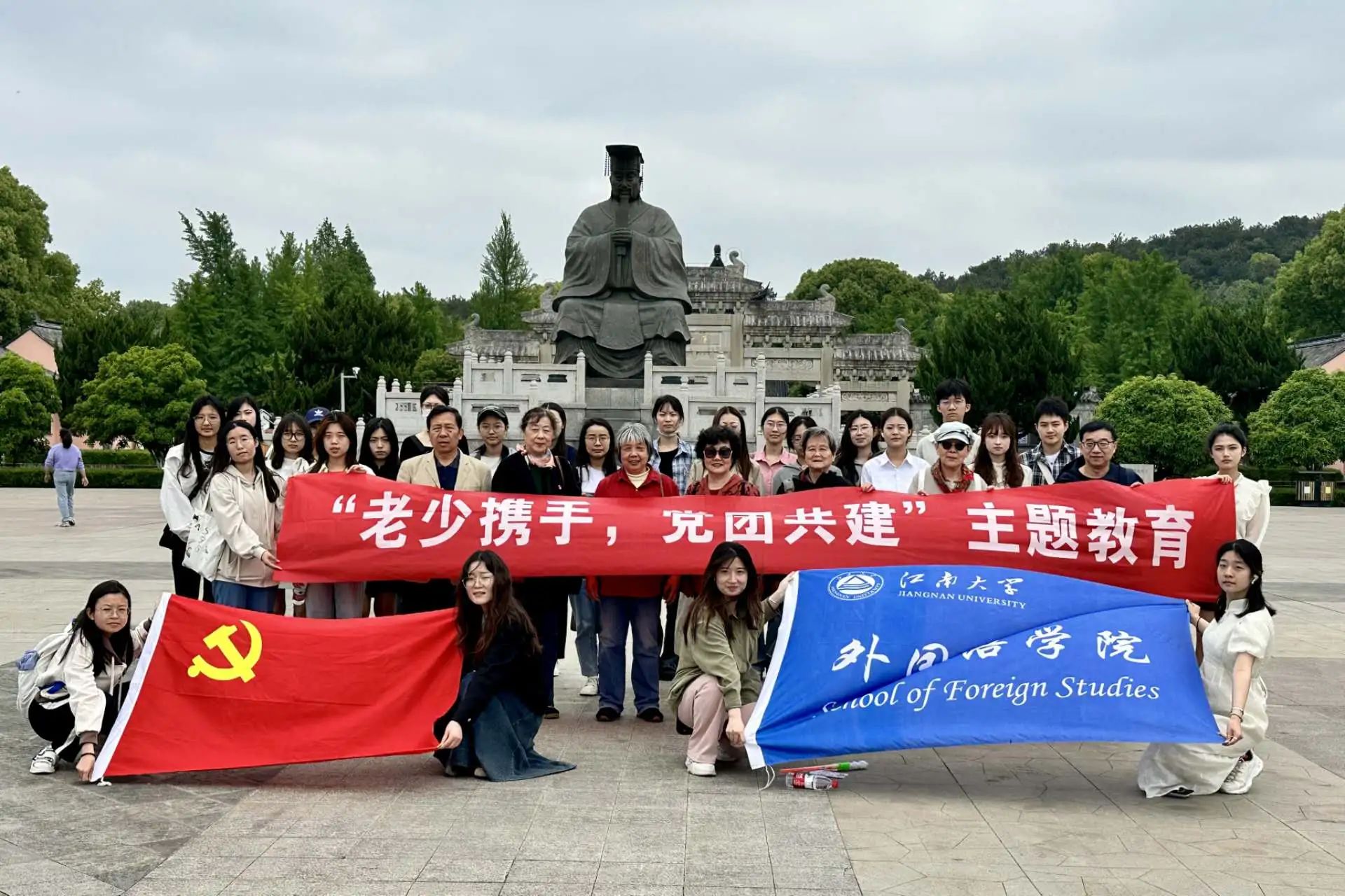 党旗所指就是团旗所向。为鼓励新时代中国青年团结凝聚在党的周围,以昂扬向上的精神风貌在中国式现代化建设中挺膺担当,坚定青年党员和团员听党话、跟党走的决心,4月27日,机关离退休第三党支部、社桥离退休党支部的部分老党员与伟德国际1946英语本科生党支部党员、雷锋特称团支部、张闻天特称团支部团员,赴无锡泰伯陵以及鸿山遗址博物馆联合开展“老少携手,党团共建”主题实践活动。